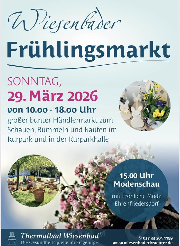 Buntes frühlingshaftes Markttreiben im Kurpark Thermalbad Wiesenbad.