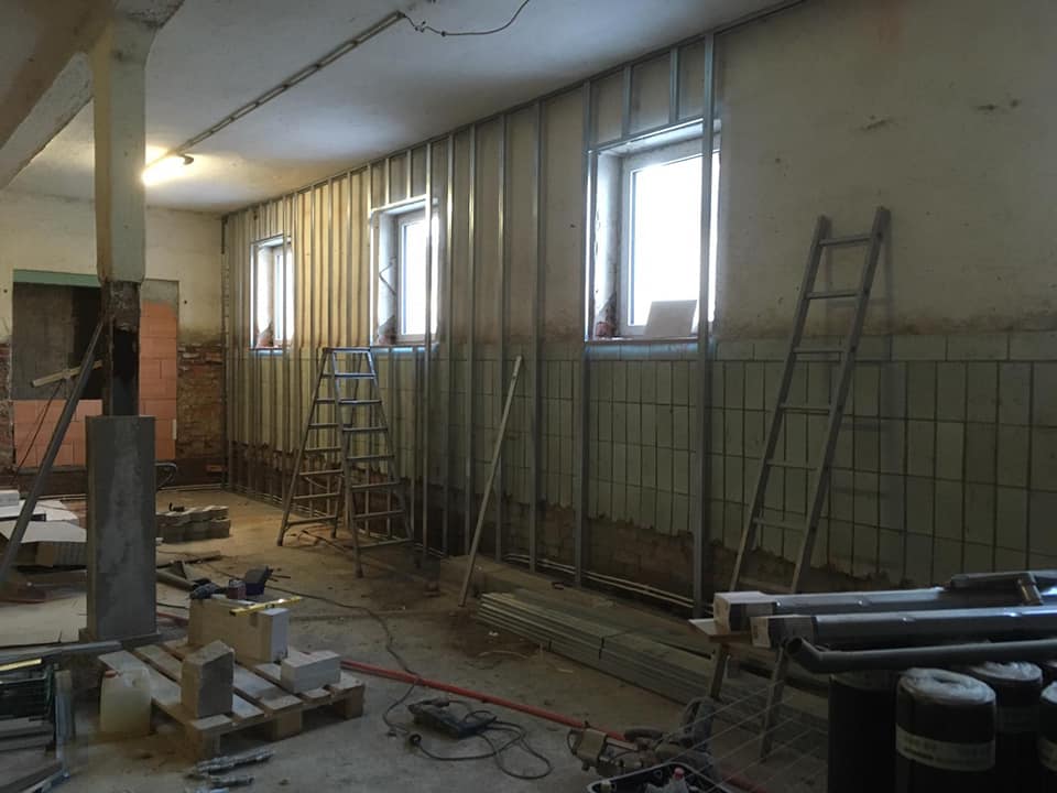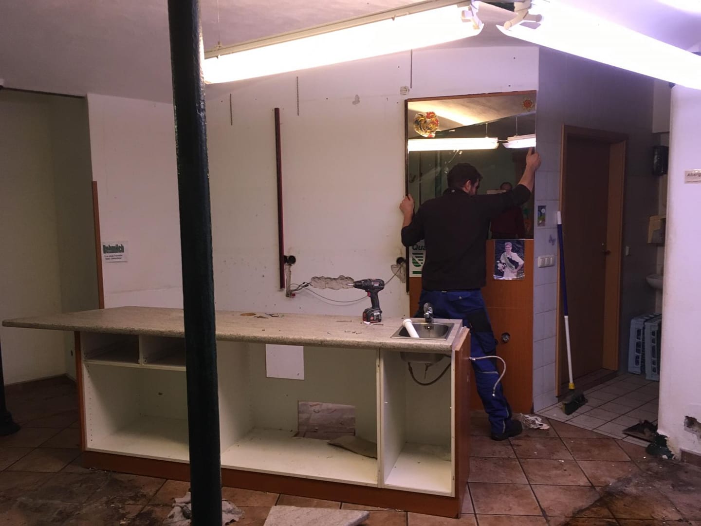 Start des Ladenumbau´s und Durchbruch in den neuen Verkaufsraum (alter Kälberstall)